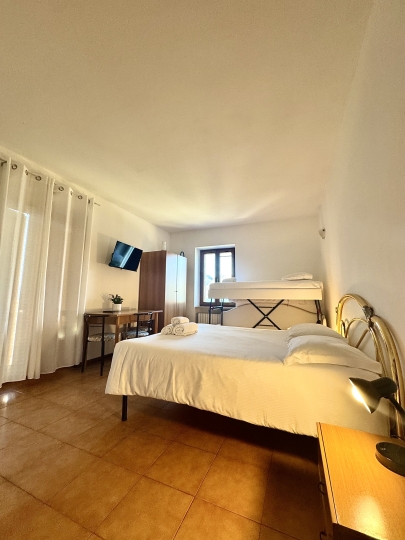 Camera da letto con letto matrimoniale e letto a castello